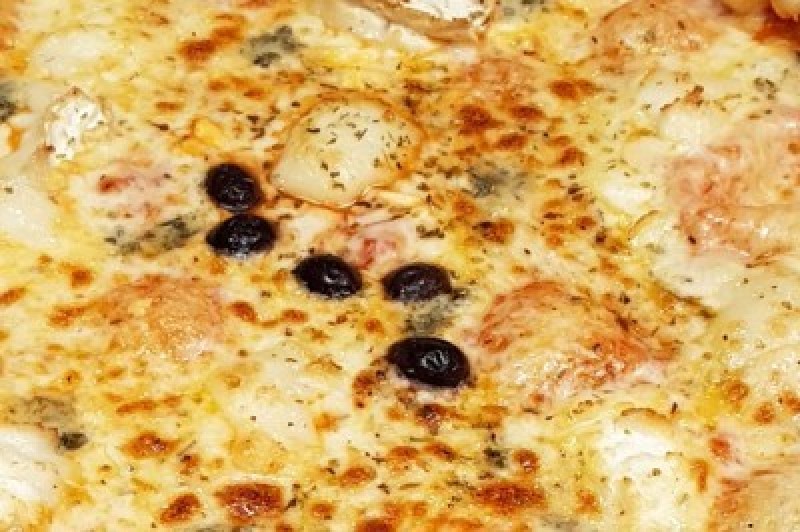 Base tomate, mozzarella 100%, cantal 100%, roquefort 100%et chèvre 100%