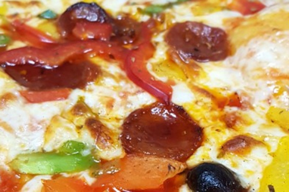 Base tomate, chorizo fort, mozzarella 100%, poivron frais